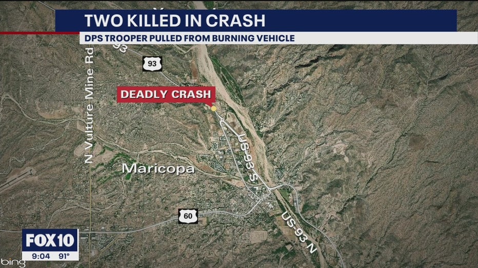 PHOENIX - An Arizona Dept. of Public Safety trooper was injured in a deadly crash north of Wickenburg on April 30, shutting down the US 93 highway in both directions, officials said.
