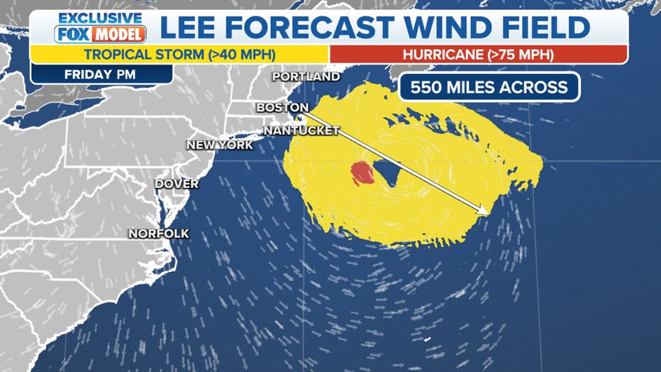 The FOX Forecast Center expects Lee’s wind field to extend more than 550 miles across, which would make impacts far-reaching in New England.