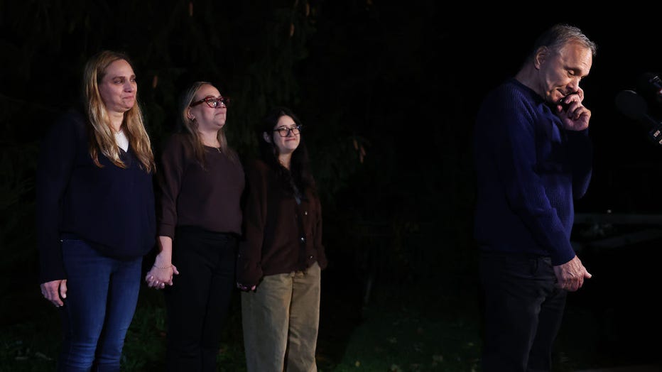 Uri Raanan, father of Natalie Raanan and ex-husband of Judith Raanan, speaks outside his home in Bannockburn, Illinois, on Friday, Oct. 20, 2023, to express his emotions after Natalie and Judith were released by Hamas. (Chris Sweda/Chicago Tribune/Tr