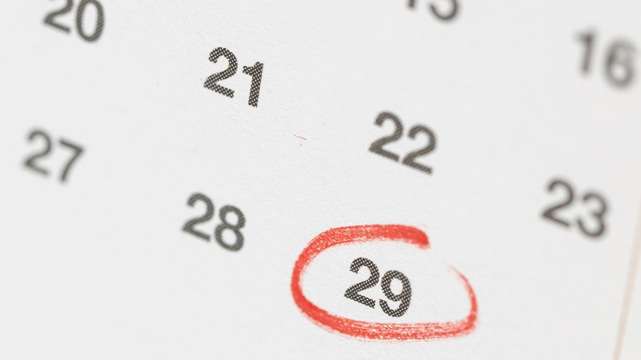 Red circle mark on February 29th day on calendar. (Credit: Getty Creative)
