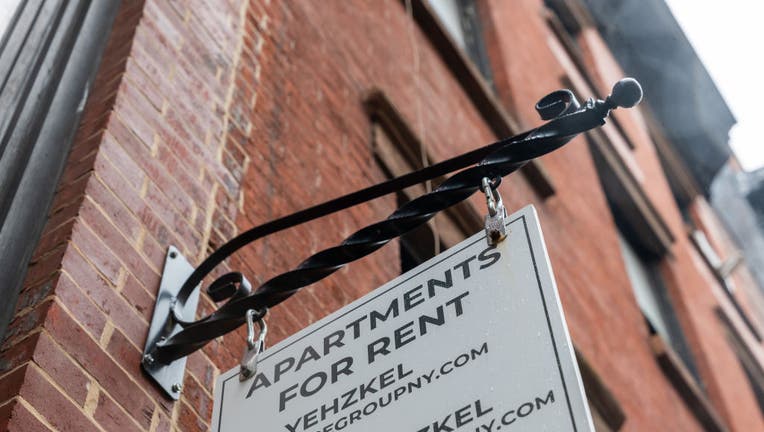 A sign advertising units for rent is displayed outside of a Manhattan building on April 11, 2024 in New York City. (Photo by Spencer Platt/Getty Images)