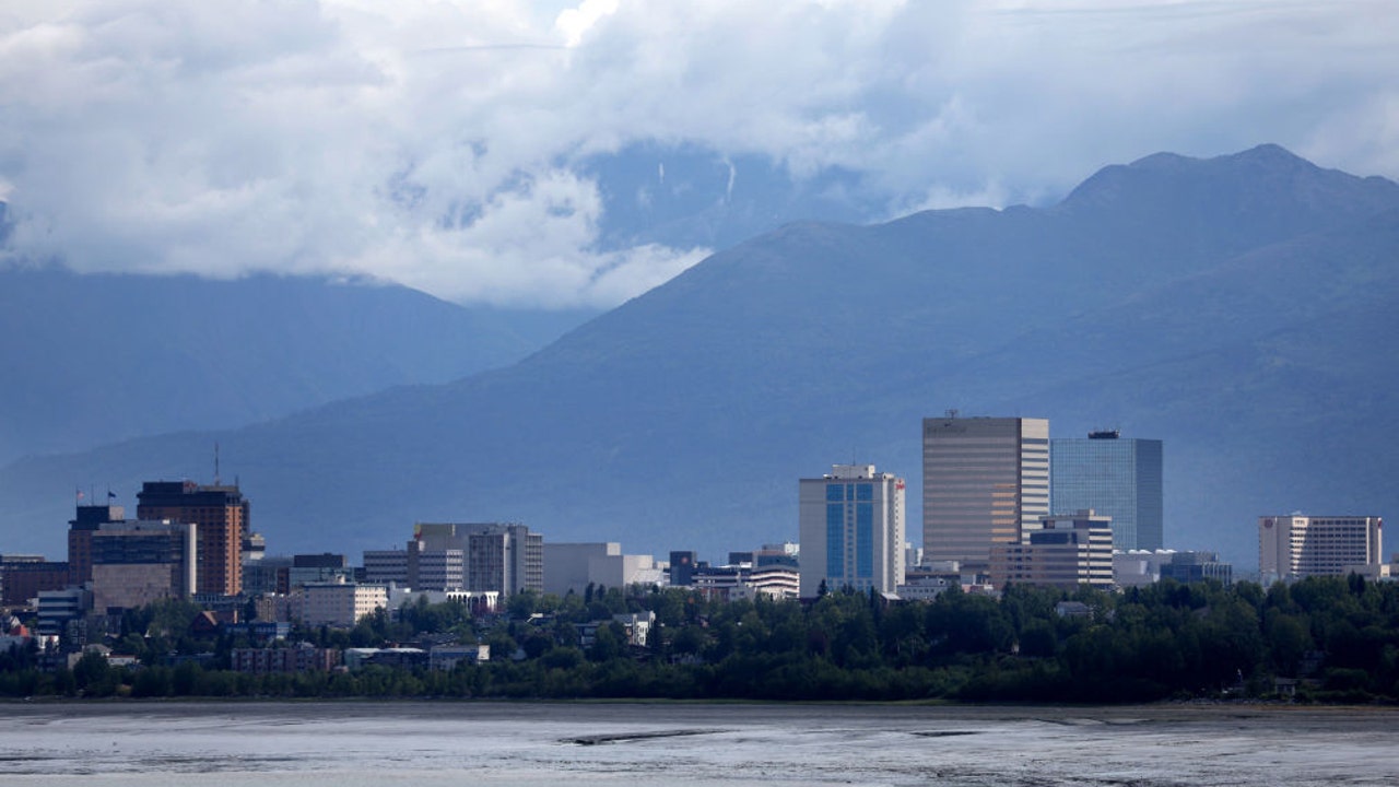 FILE-A view of the downtown skyline with mountains in the rear on July 10, 2022 in Anchorage, Alaska. (Photo by Justin Sullivan/Getty Images)