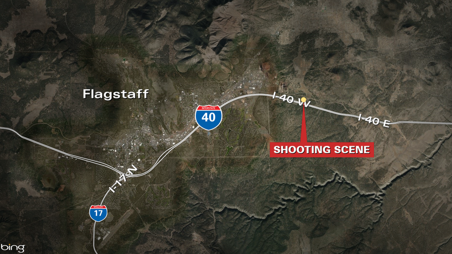 FLAGSTAFF, Ariz. - An Arizona state trooper shot and wounded a man driving a big rig the wrong way on a highway after bolting from a traffic stop and commercial vehicle inspection, officials said.