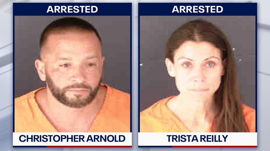 The couple, identified as Christopher Arnold and Trista Reilly, are accused of engaging in sexual activity during a flight from New York to Sarasota, Fla.