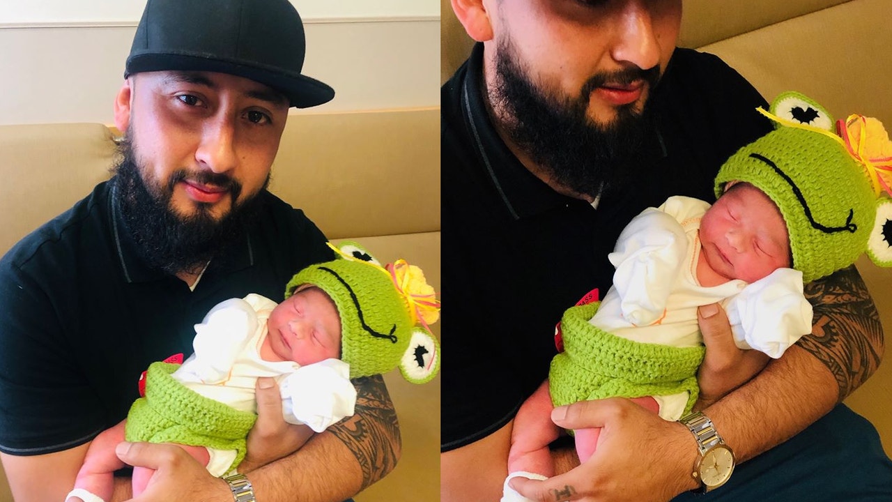 Hospital workers dressed the newborn as a leapfrog and marked the special occasion with cake, balloons, the “Happy Birthday” song and a brief photoshoot with her dad.