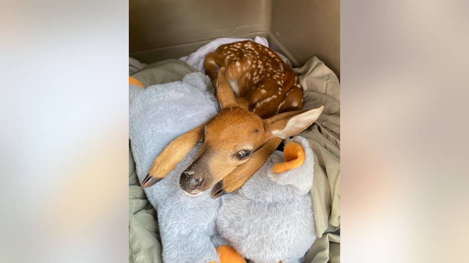 WILD Florida Rescue posted photos of the little fawn on Facebook this week. They told FOX 35 News that the baby and his mom were found on County Road 46 in Mims by someone driving by.