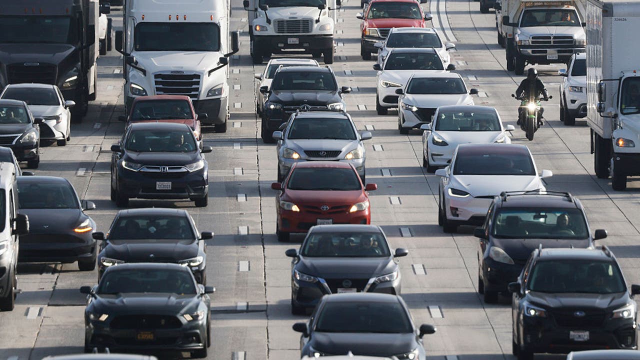 Motorists drive on Interstate 210 during the morning commute on December 03, 2025 in Pasadena, California. (Photo by Mario Tama/Getty Images)