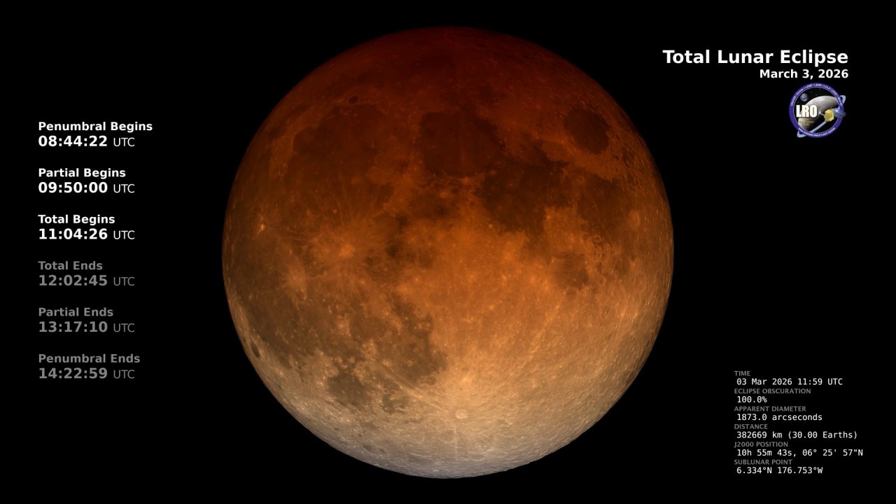 The total lunar eclipse will take place in the early morning hours of March 3, 2026 (Tuesday).