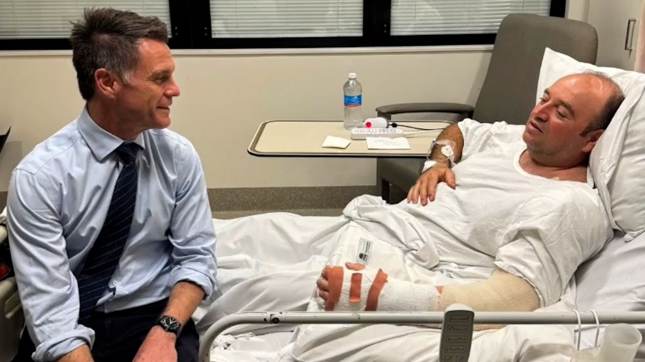 (The Premier of New South Wales visited Ahmed el Ahmed — the man who tackled one of the Bondi Beach attackers — as he underwent treatment in hospital on Monday, December 15. (Credit: Chris Minns via Storyful))