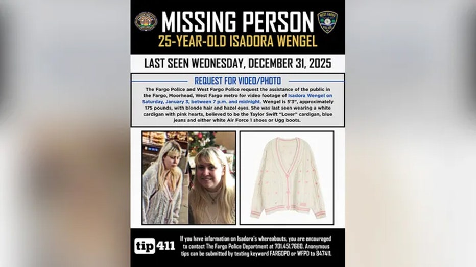 Isadora Wengel was last seen wearing a white cardigan with pink hearts near Fargo, N.D. (Fargo Police Department)