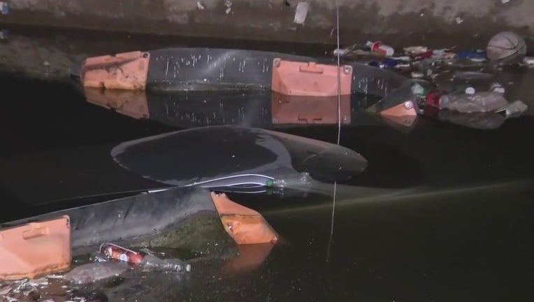 Car crashes into a canal after hitting a bicyclist in Glendale