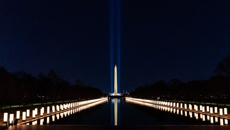 Hundreds of luminaries line the edge of the reflecting pool to pay tribute to the 400,000 people in the U.S., who have died of the coronavirus are seen during a COVID memorial event at the Lincoln Memorial on Tuesday, January 19, 2021 in Washington,