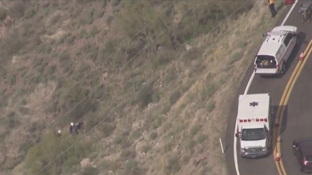 MARICOPA COUNTY, Ariz. - Authorities say one person was hurt when a car went over the side of a cliff east of the Valley.