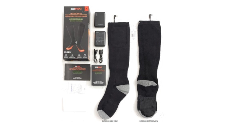 Approximately 207,806 32 Degrees Heated Socks are involved in the recall. These socks were sold in three sizes (medium, large, extra large), all in the color black. "32° HEAT" appears on the battery pack casing, battery pack packaging, user manual and the exterior retail packaging for the products.