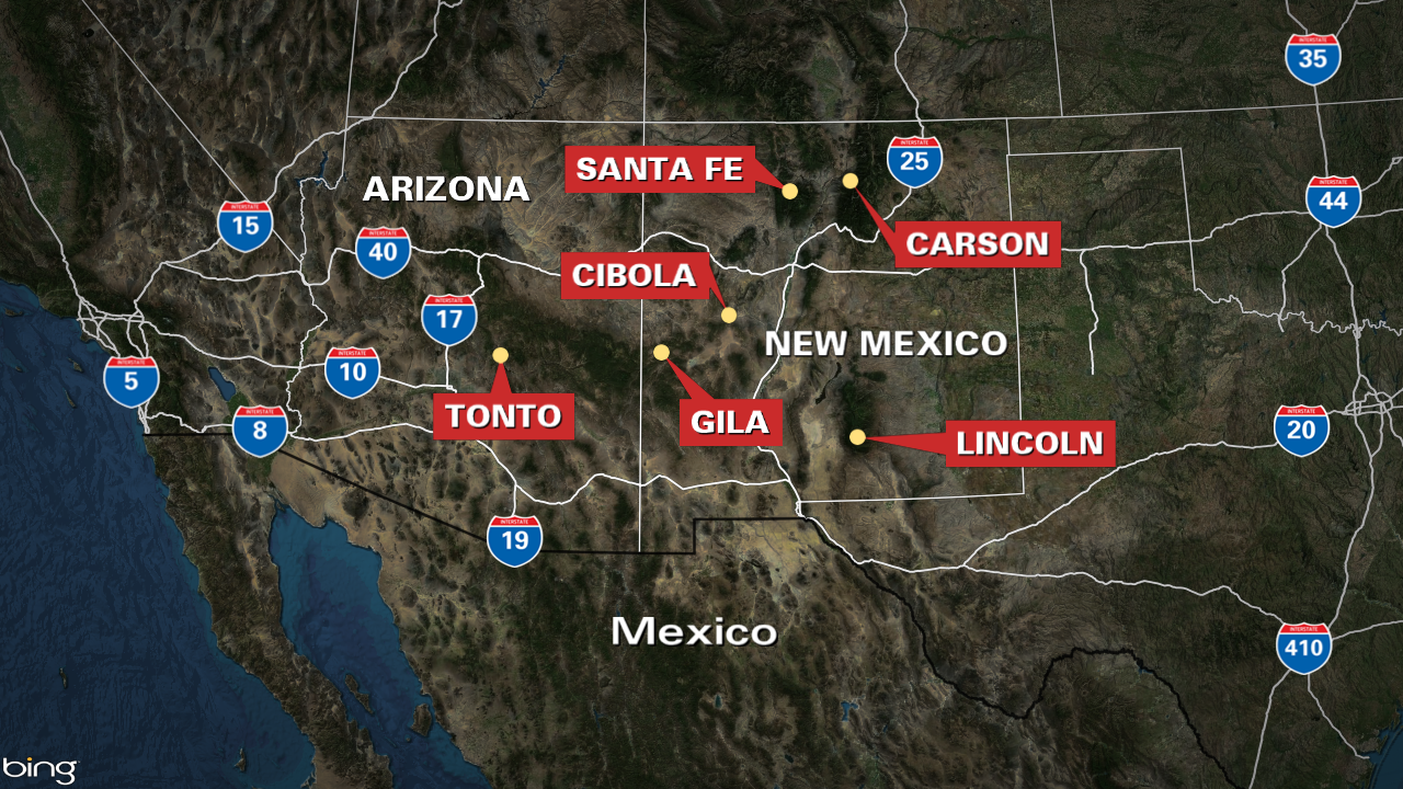 Tonto, Santa Fe, Cibola, Gila, Carson and Lincoln national forest locations.