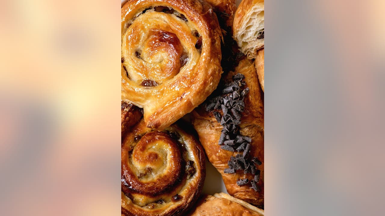 The group posted photos of the croissant on Facebook, which show that it was, in fact, lodged between several branches of a tree near residential buildings.