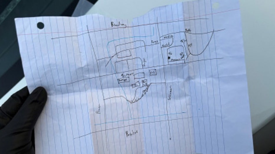 The man accused of burning a Cybertruck in Mesa Tallegedly had a handwritten map of the Tesla dealership. (KSAZ-TV; United States District Court for the District of Arizona)