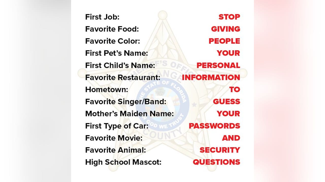 "We've all been enticed by these online quizzes," the Sheriff's Office said in a Facebook post. "It's clever how they often are tied to our passwords and online security."