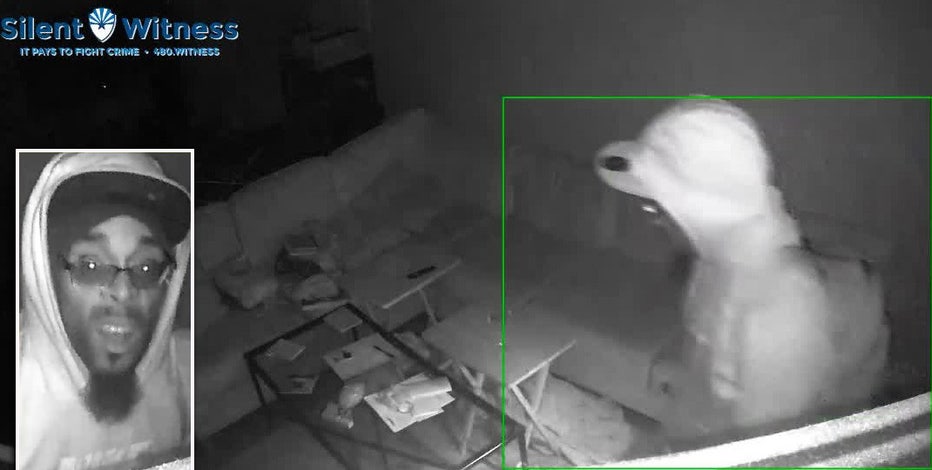 Police are searching for a suspect accused of breaking into a home in Mesa and stealing several items.