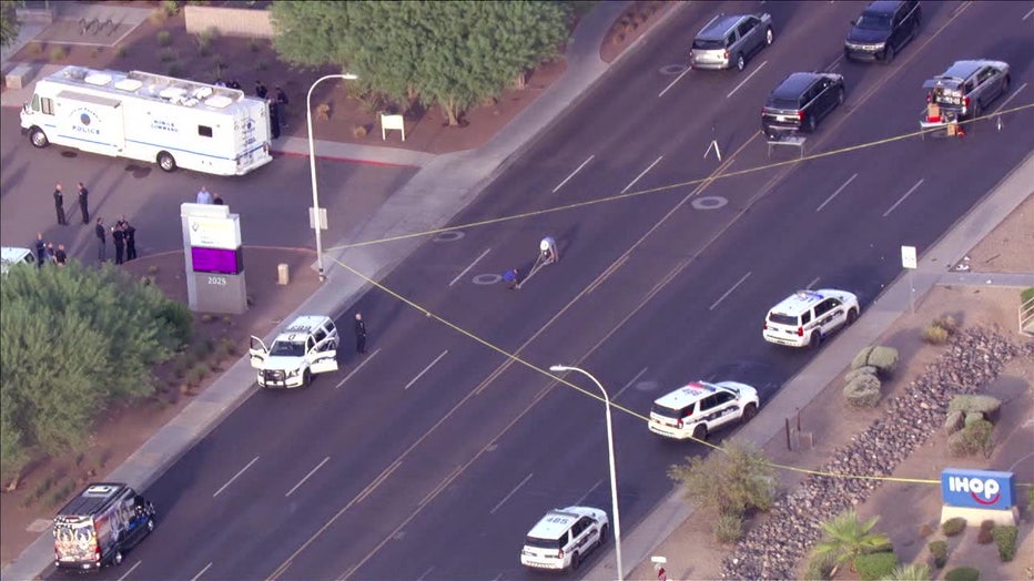 A suspect has died following an officer-involved shooting outside a Phoenix restaurant near 19th Avenue and Northern.