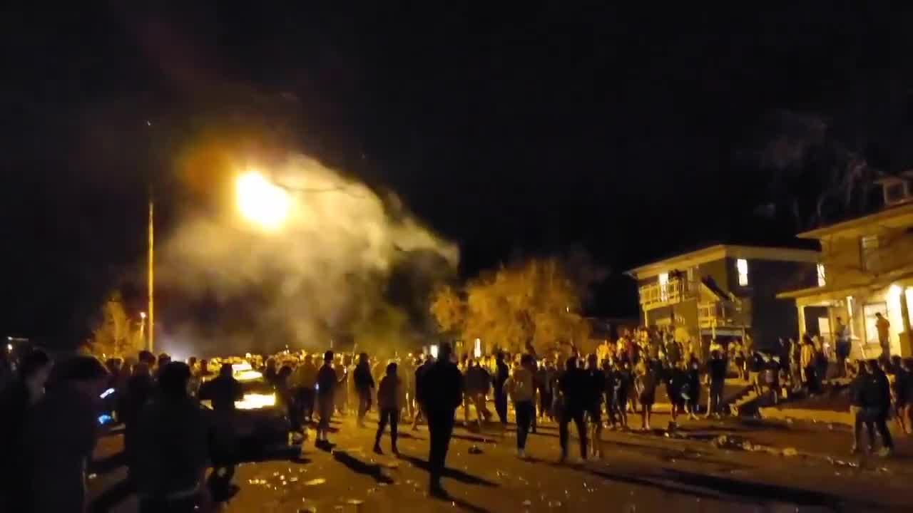 Images shared by local media showed no social distancing and most without masks despite the coronavirus pandemic. Fireworks were set off in the middle of the street and a law enforcement armored vehicle and a fire truck were damaged, according to police and local media.