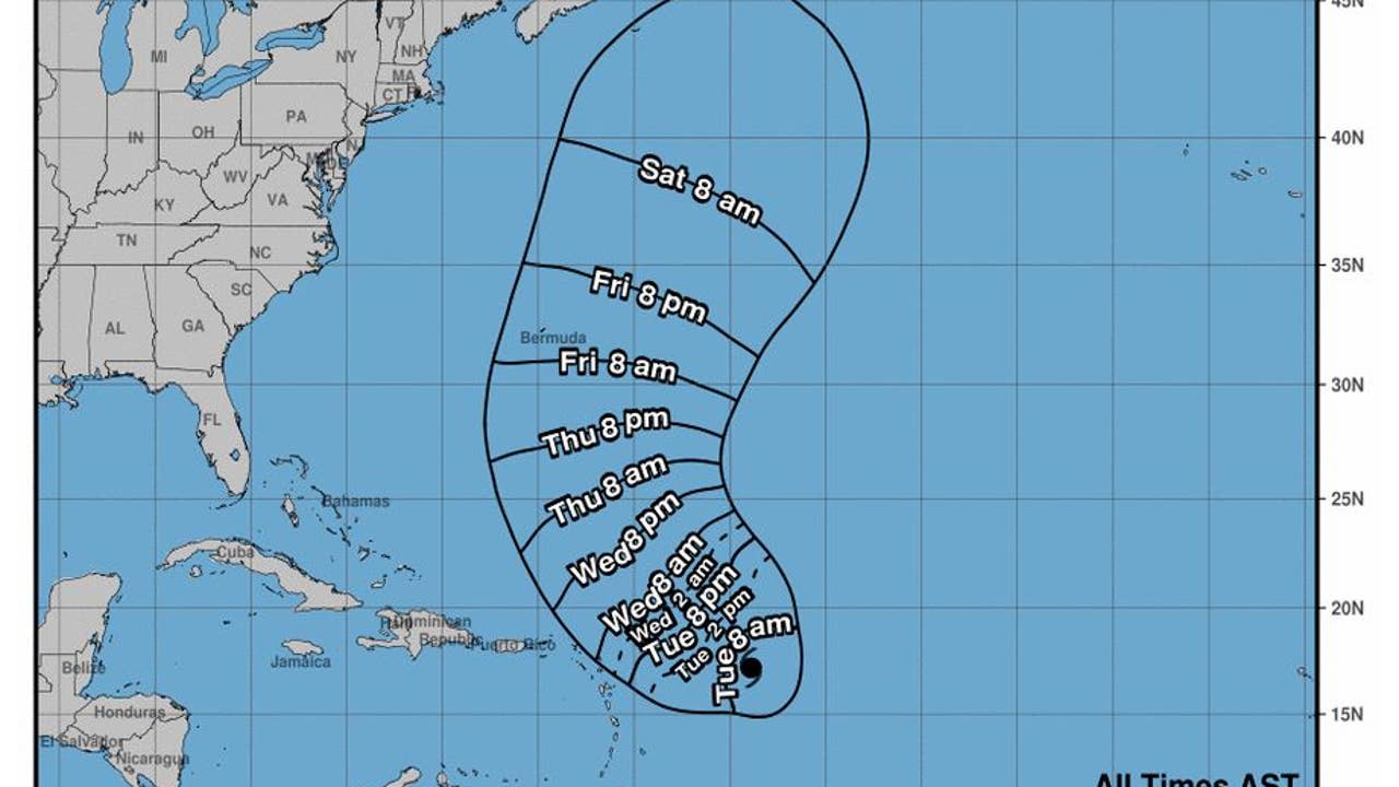 The storm was located about 530 miles east of the northern Leeward Islands and traveling northwest at 9 mph, according to a Tuesday morning update from the National Hurricane Center.