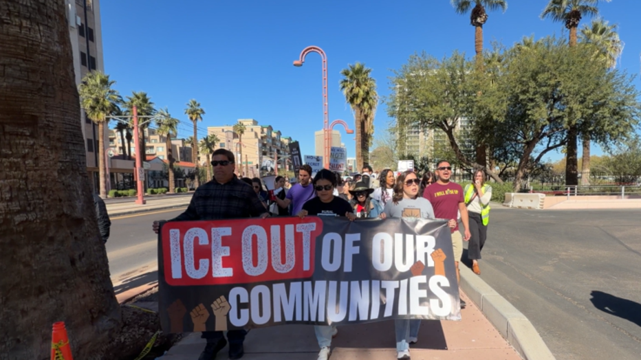 PHOENIX - ICE protests continued Tuesday, after federal raids of 15 sports bars in the Valley. Protesters believe this was all an immigration raid, and the rally led to a march to ICE facilities.