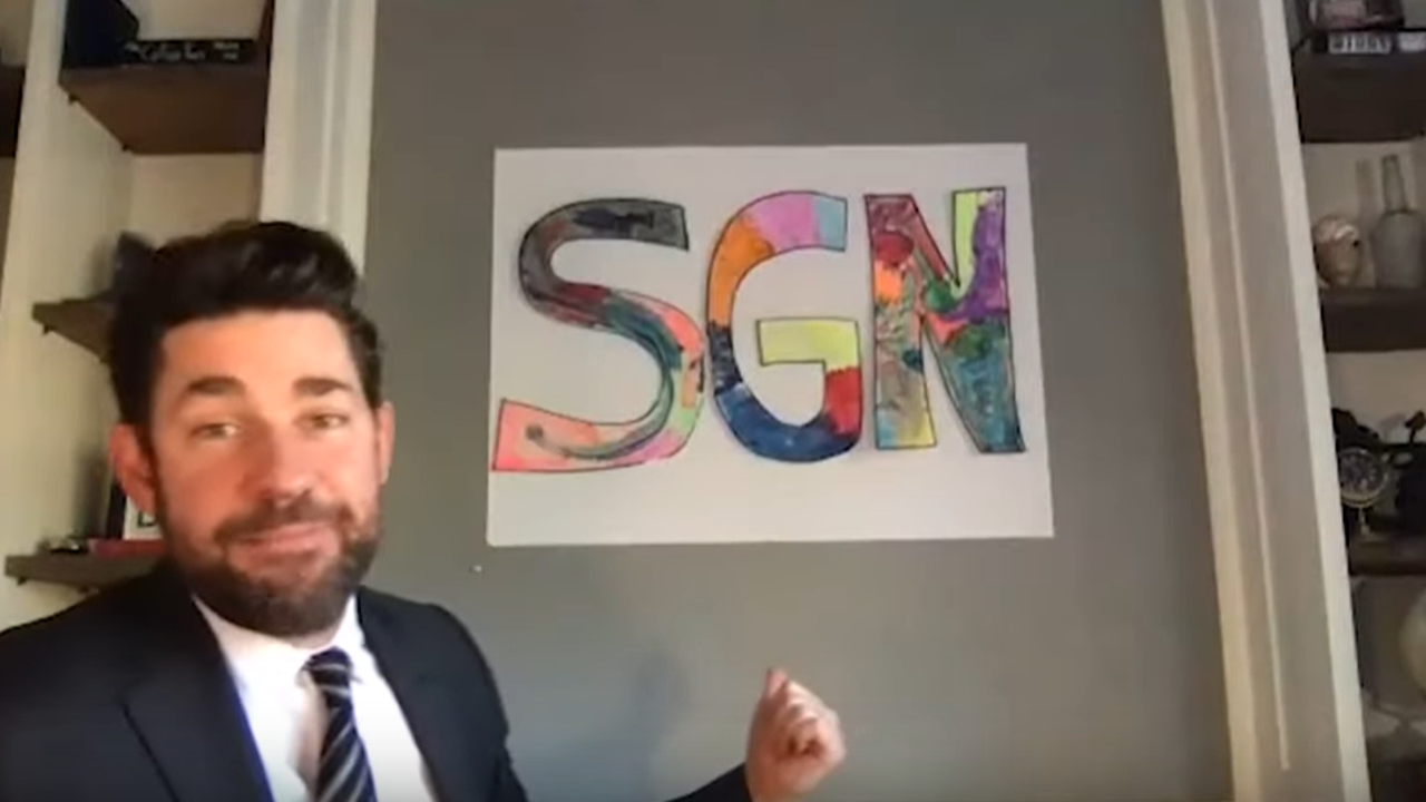 With a crayon-colored SGN logo hanging behind him, Krasinski reviews some of the good news that’s been bubbling up between the negative headlines dominating the pandemic news cycle. He’s only released one episode so far, but it featured a very special guest and former co-star of Krasinski’s. We won’t spoil it, but let’s just say the guest’s name rhymes with Shmeeve Shmarell.