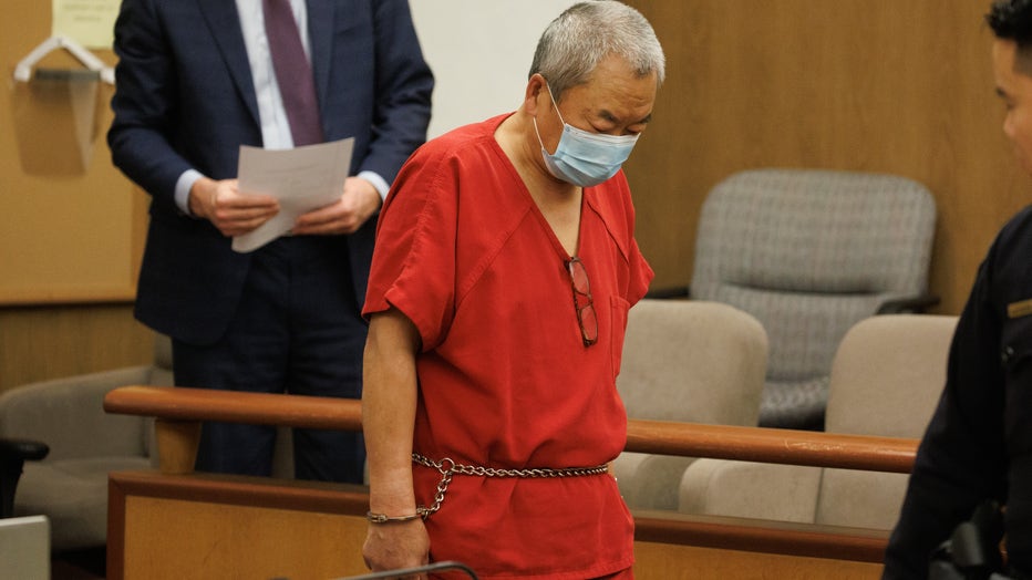 Chunli Zhao appears for a motion hearing at the San Mateo County Hall of Justice in Redwood City, Calif., on Friday, Feb. 10, 2023. Zhao has been charged with seven counts of murder and one count of attempted murder for the mass shooting on Jan. 23,