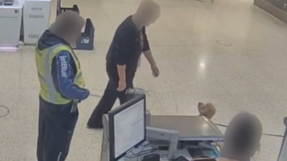 When questioned by officers, the woman said the airline would not let her board with the dog and claimed the animal had a tracking device, suggesting it would be able to find its way back to her.