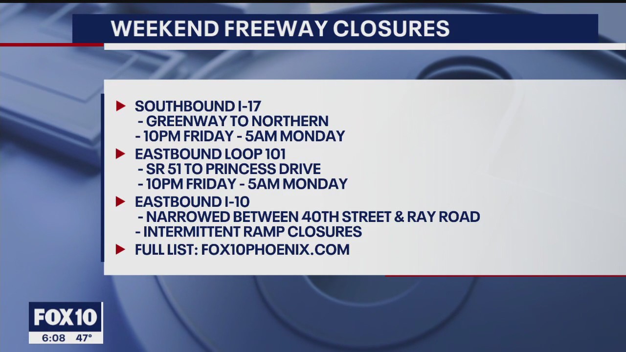 Heads up, drivers: More Phoenix-area freeway closures will go into effect this weekend due to construction projects.