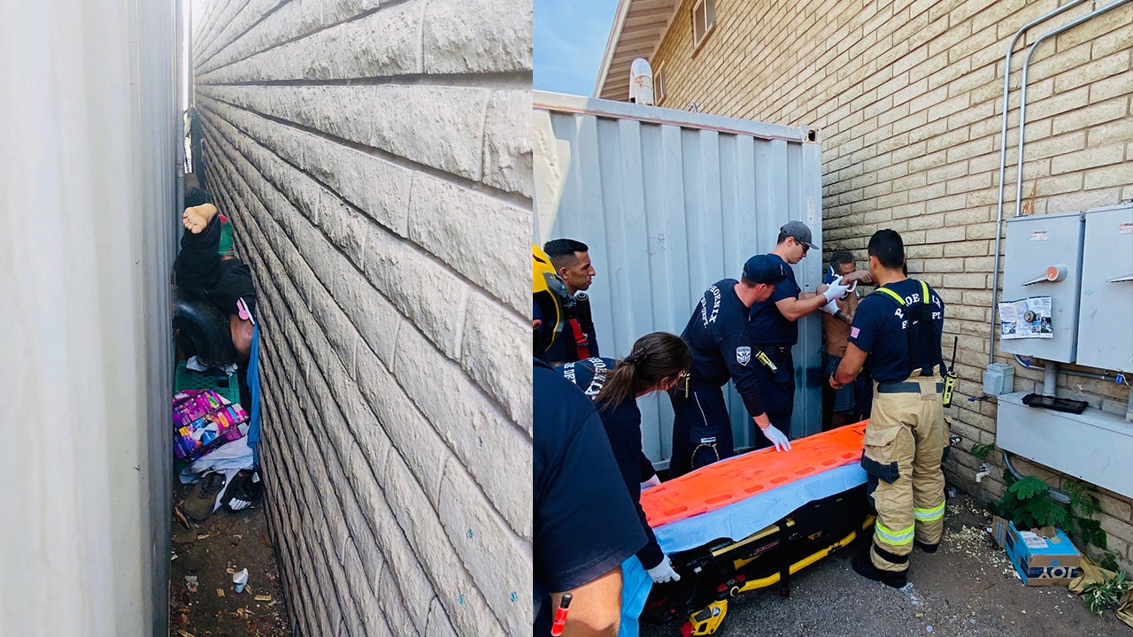 Man lodged between 24-foot shipping container and wall in Phoenix rescued