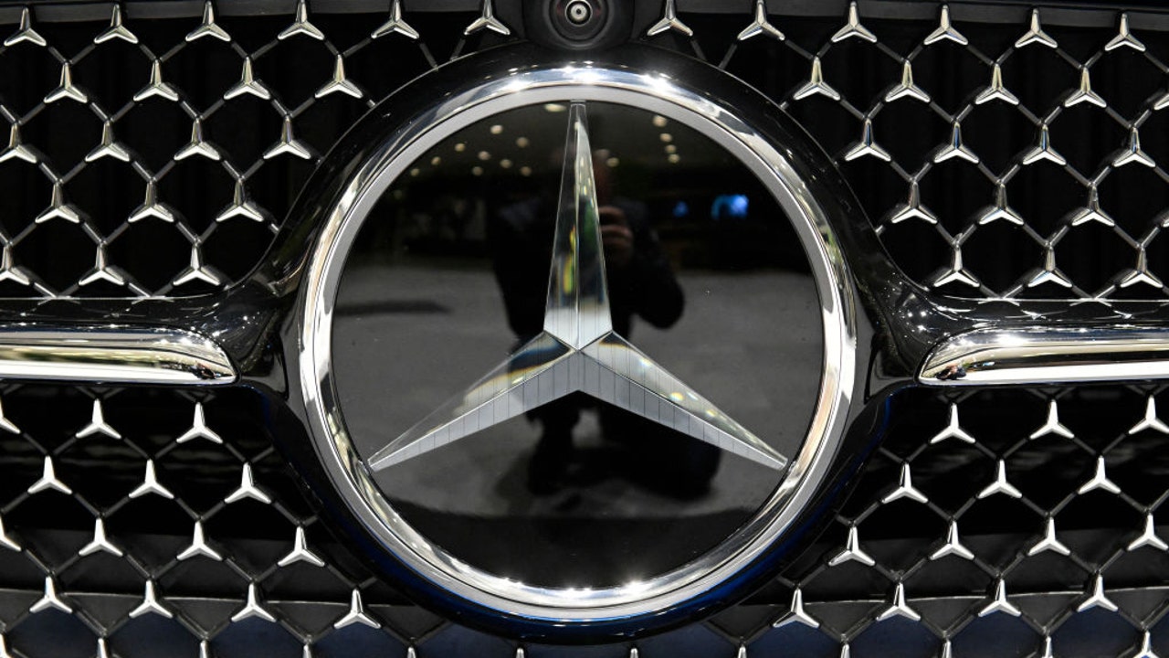 FILE-The Mercedes-Benz logo is displayed on the front of a Mercedes-Benz car at the Annual Results Conference of the Mercedes-Benz Group AG in Stuttgart, southern Germany on February 22, 2024. (Photo by THOMAS KIENZLE/AFP via Getty Images)