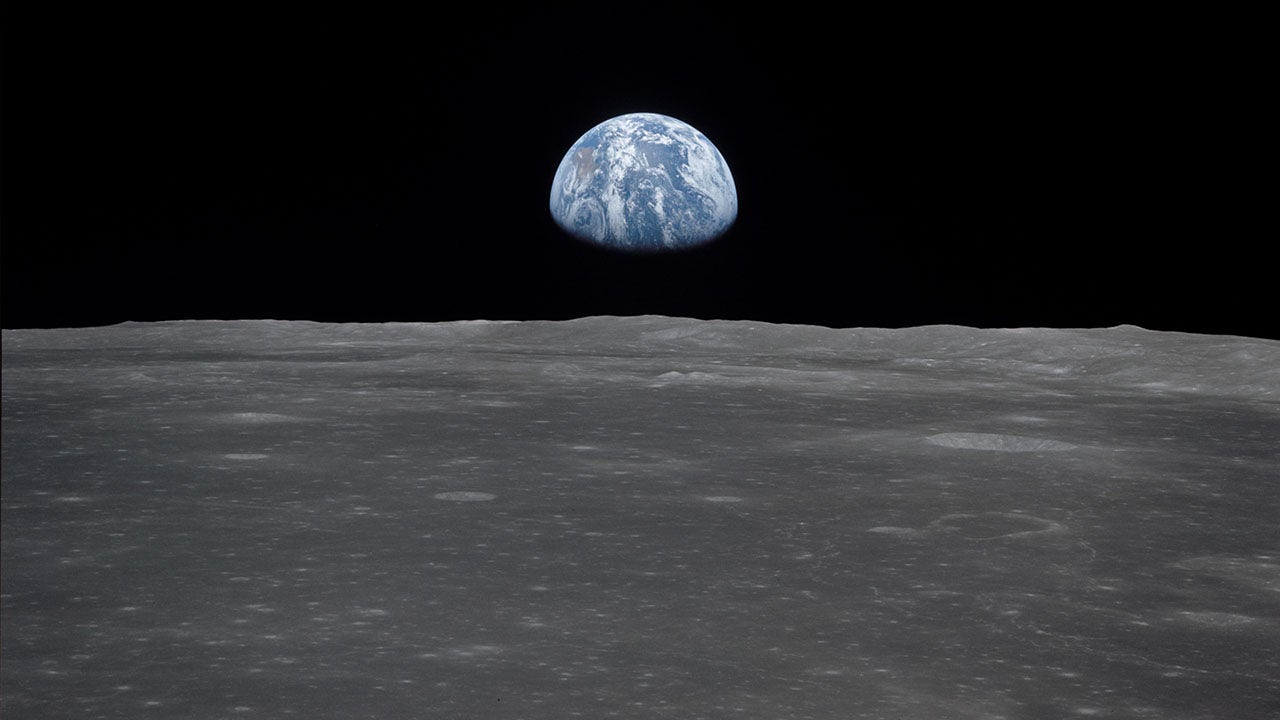 This view from the Apollo 11 spacecraft shows the Earth rising above the moon's horizon. Credit: NASA/JSC
