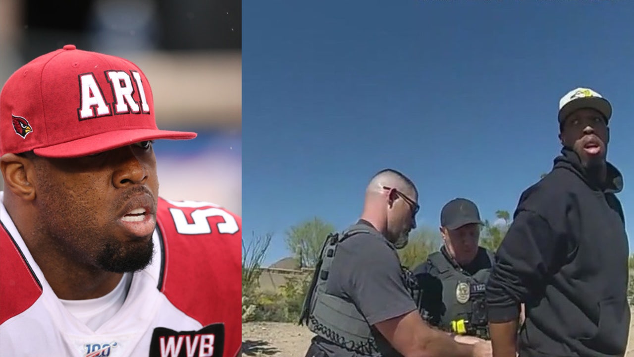 Body-cam video from Scottsdale Police shows the moment ex-NFL and ASU star Terrell Suggs was arrested for pulling out a gun at a Starbucks drive-thru. (Getty Images and Scottsdale PD)