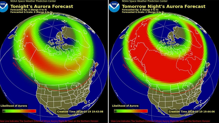 Aurora forecast for March 19 and March 20. (SWPC)