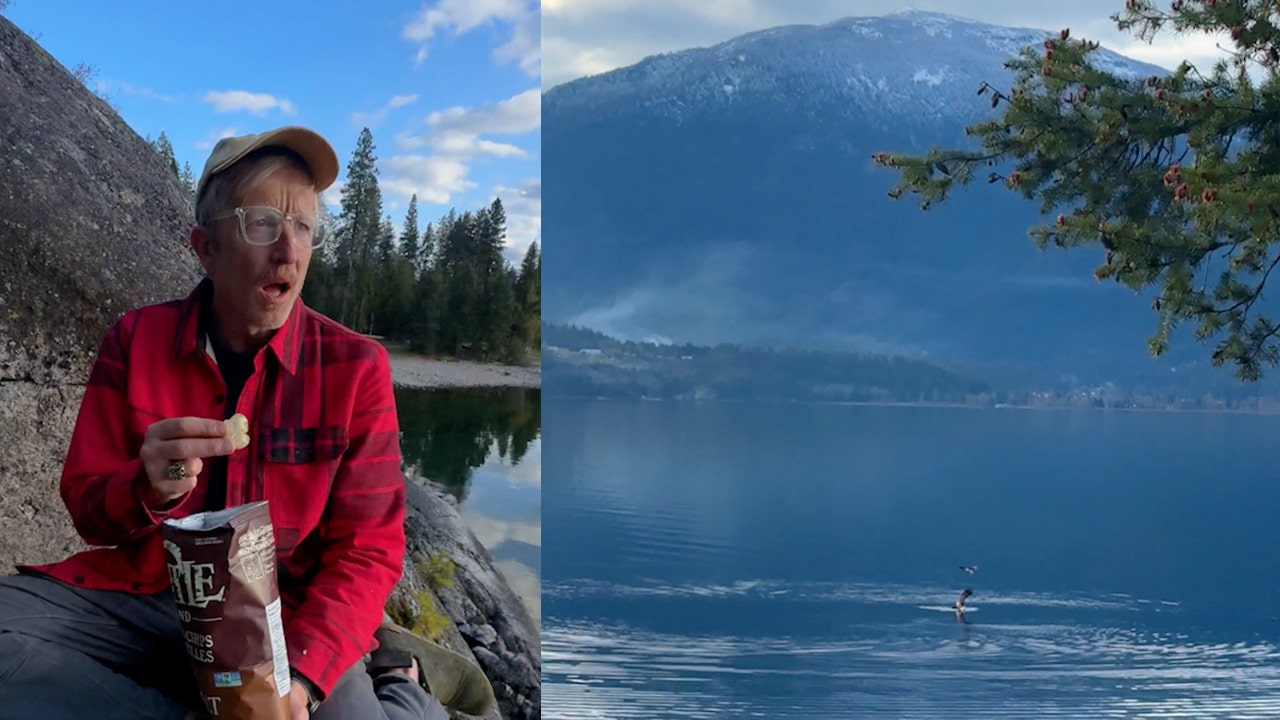 Ryan Dutchak filmed the encounter Friday on Kootenay Lake as the two birds of prey fought over a fish in the water. Dutchak and his friend Craig Mullin narrated the scene, which Dutchak described as a "miracle of nature."