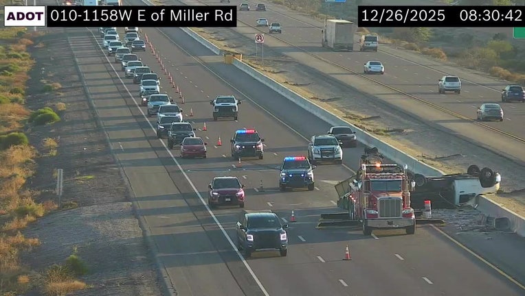 PHOENIX - A crash involving an overturned trailer has resulted in traffic disruptions along a portion of I-10 west in the Far West Valley.