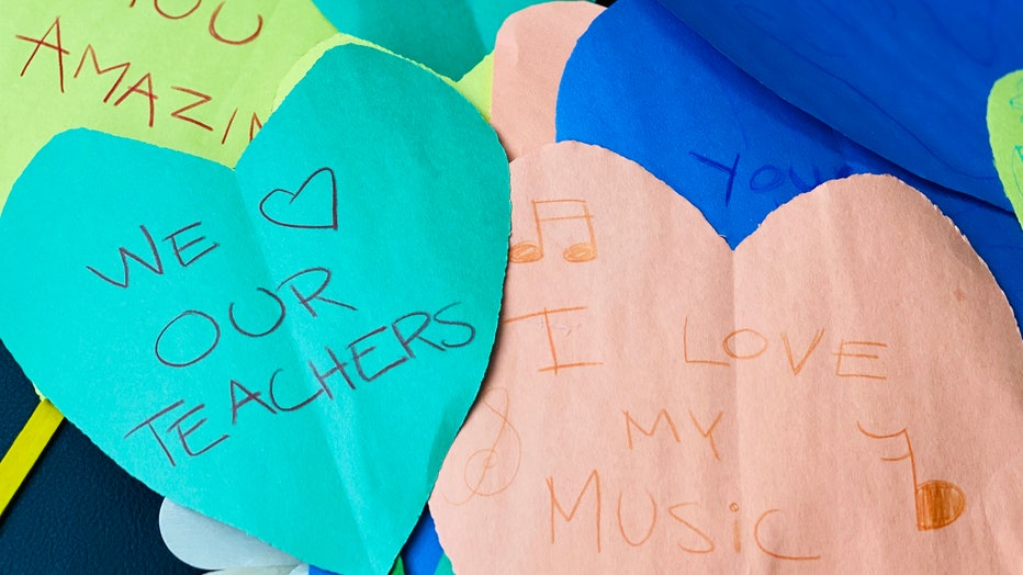 Colorful, paper hearts were used to decorate the district's office to show support from students and parents.