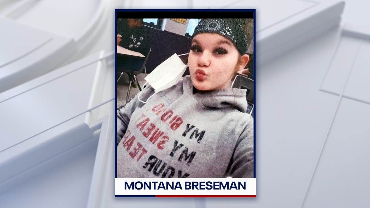 Montana 'Jordan' Breseman was last seen wearing a white hoodie that said "My Body My Sweat Your Tears," gray and black leggings, and had her hair pulled into a bun. Investigators said the 11-year-old is 5 feet, 5 inches tall and weighs about 150 pounds. She has burgundy hair and brown eyes.