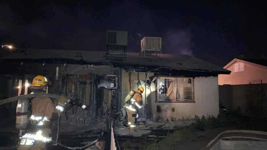 Fire officials say first responders saw heavy smoke and fire near the back of the house, with a large amount of the back patio on fire.