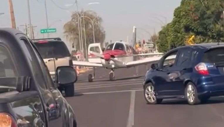 MESA, Ariz. - The pilot of a small plane was forced to make an emergency landing on Tuesday near an East Valley intersection.