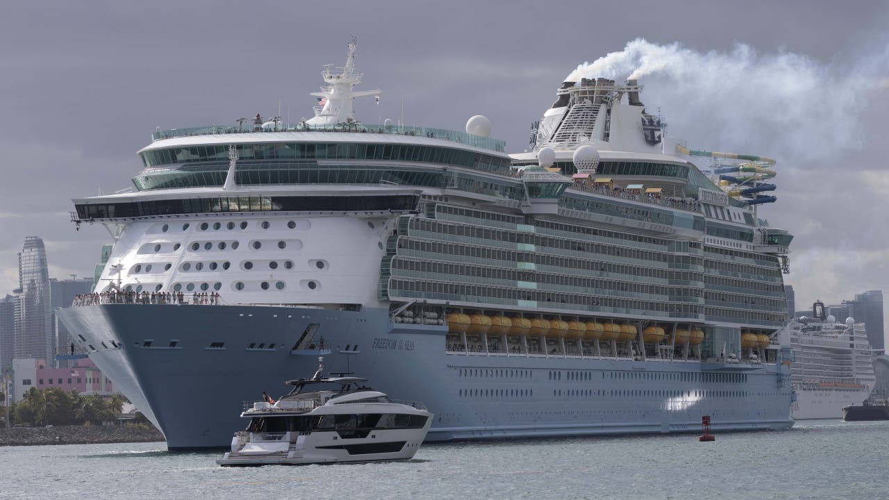FILE - The Royal Caribbean Freedom of the Seas cruise ship sets sail from PortMiami on March 12, 2026 in Miami, Florida. (Photo by Joe Raedle/Getty Images)