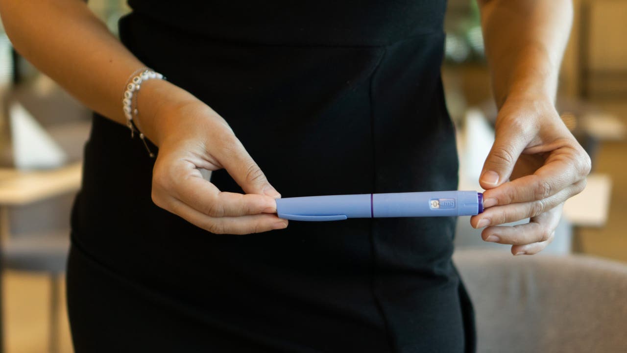 Woman holds an insulin injection pen, a concept of medical treatment, modern healthcare, and weight loss solutions. (Credit: Getty Images)