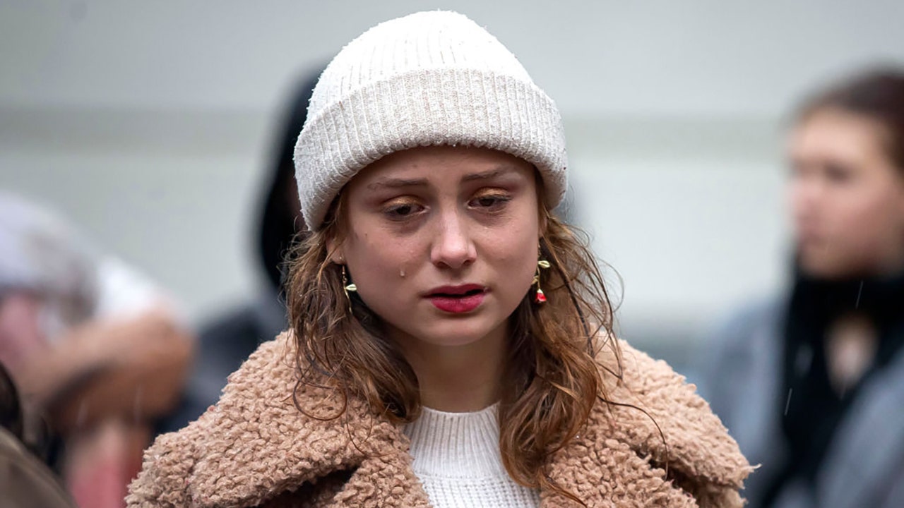 A woman mourns as people gather to pay their respects in front of the Charles University building following a mass shooting yesterday, on December 22, 2023 in Prague, Czech Republic. (Photo by Gabriel Kuchta/Getty Images)