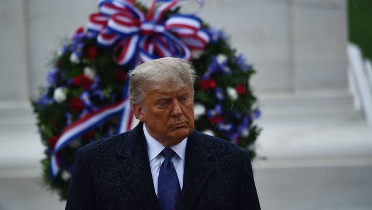 President Donald Trump attends a "National Day of Observance" wreath laying ceremony on November 11, 2020 at Arlington National Cemetery in Arlington, Virginia. (Photo by BRENDAN SMIALOWSKI/AFP via Getty Images)