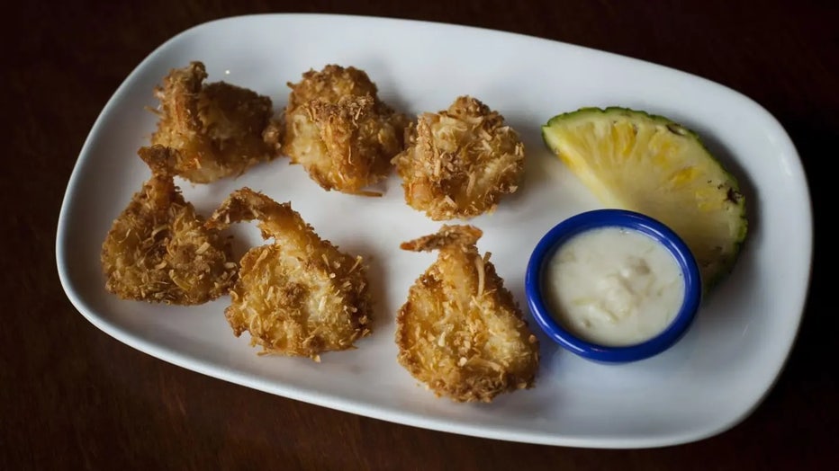 A coconut shrimp dish is displayed for a photograph at a Red Lobster restaurant in Yonkers, New York, on July 24, 2014. (Michael Nagle/Bloomberg via Getty Images)