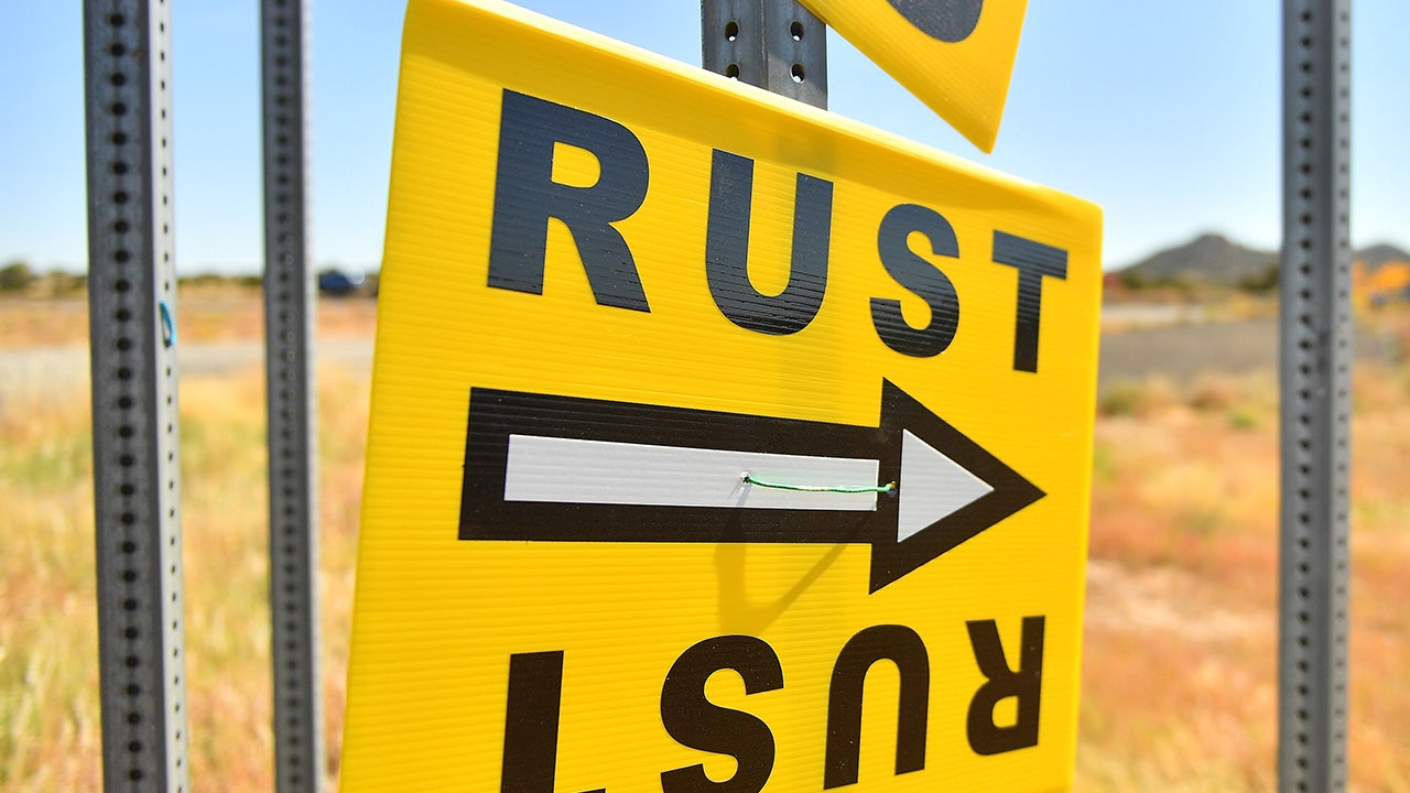 A sign directs people to the road that leads to the Bonanza Creek Ranch where the movie "Rust" is being filmed on October 22, 2021 in Santa Fe, New Mexico. Director of Photography Halyna Hutchins was killed and director Joel Souza was injured on set