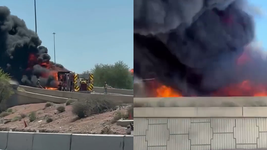 RV catches fire on I-17 in north Phoenix, family escapes unharmed