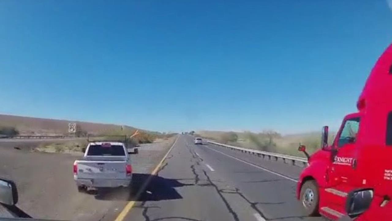 Dashcam: Semi narrowly misses rear-ending truck on Arizona highway